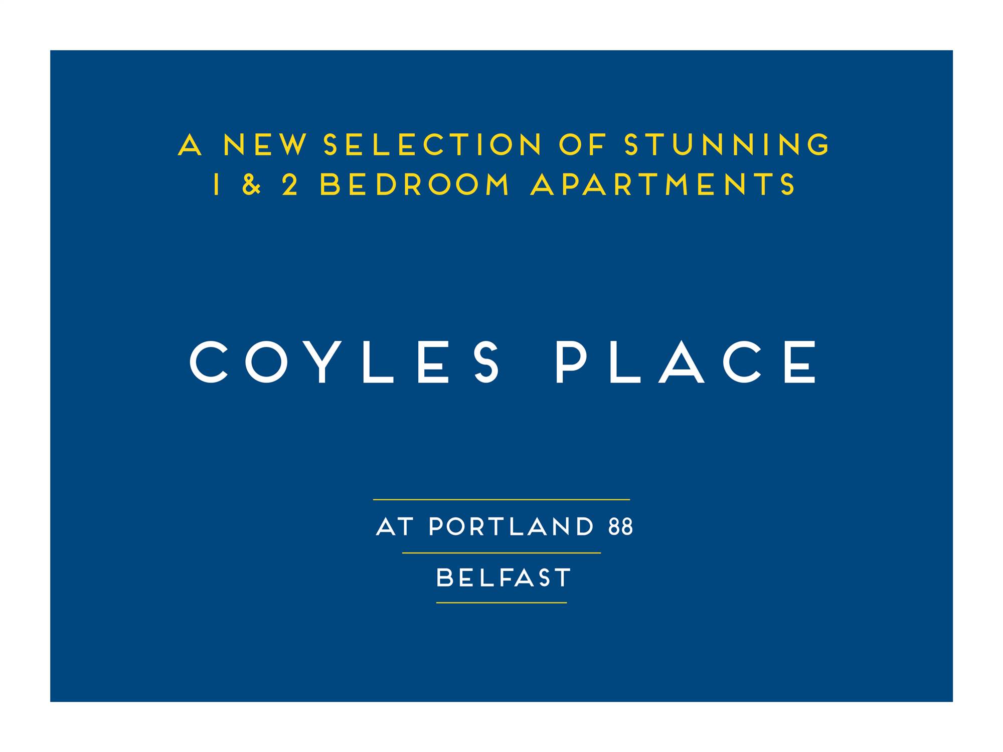 Situated opposite the historic Gasworks site in Belfast city centre, Coyles Place at Portland 88 is a landmark building comprising 38 luxury "smart"apartments.