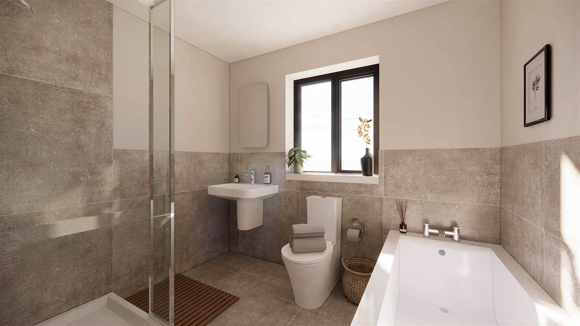 Wall tiling to shower enclosures, around the bath and splashbacks to all wash hand basins.