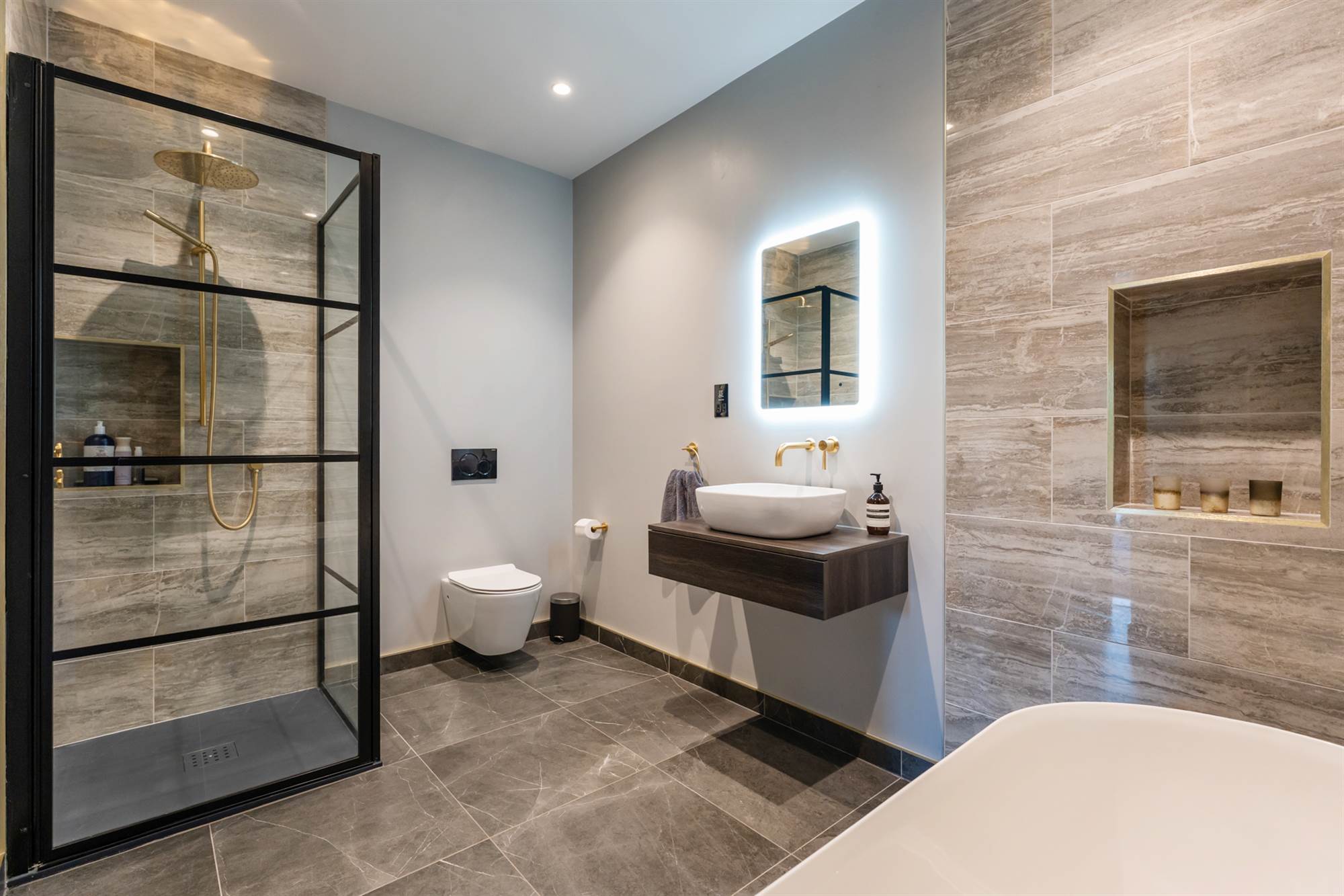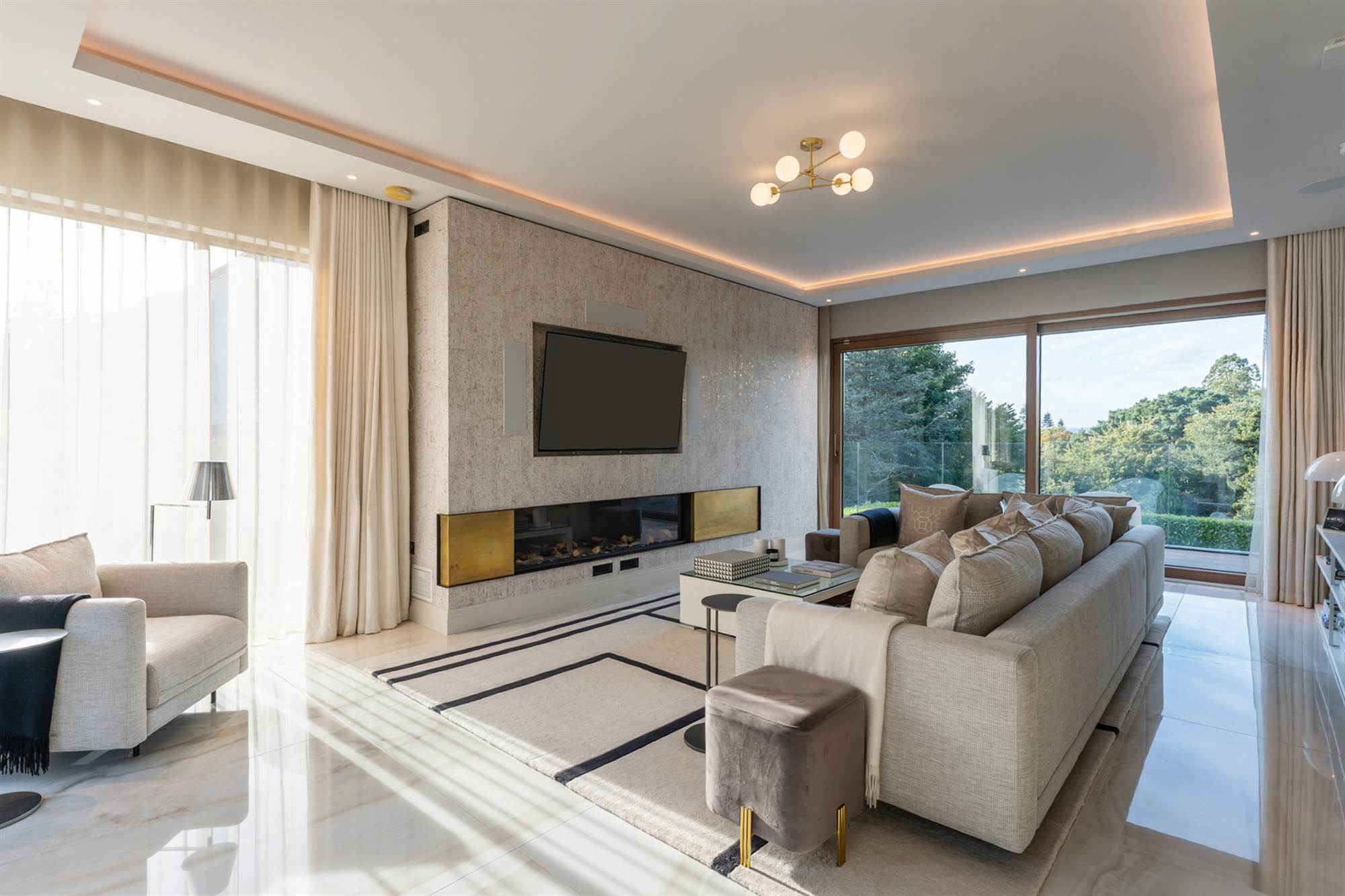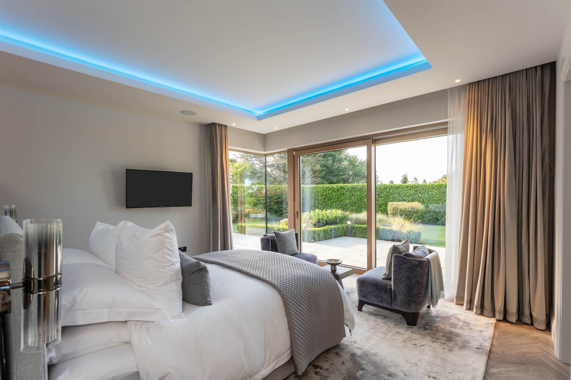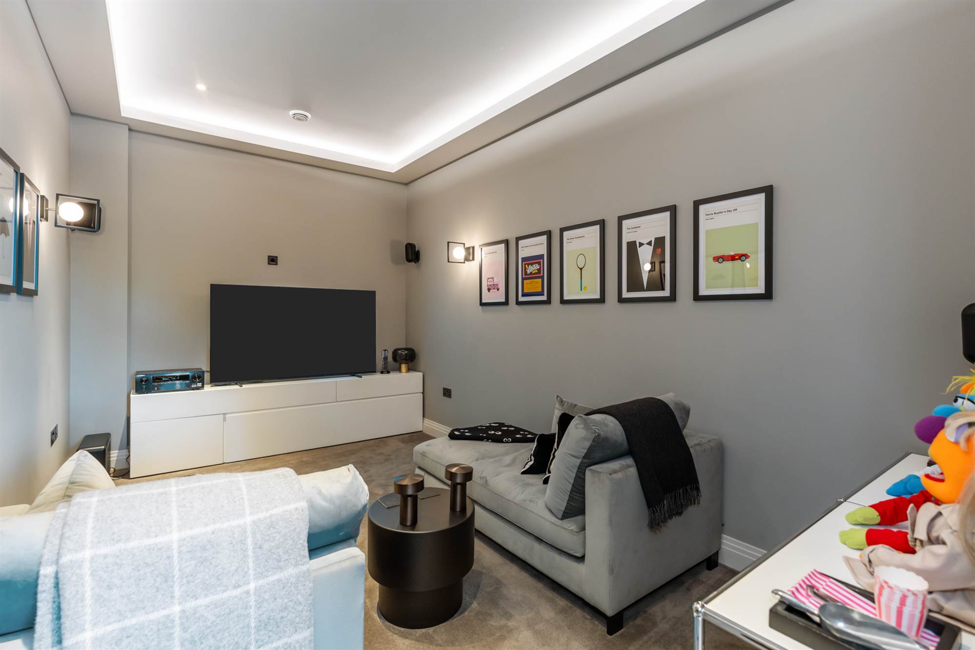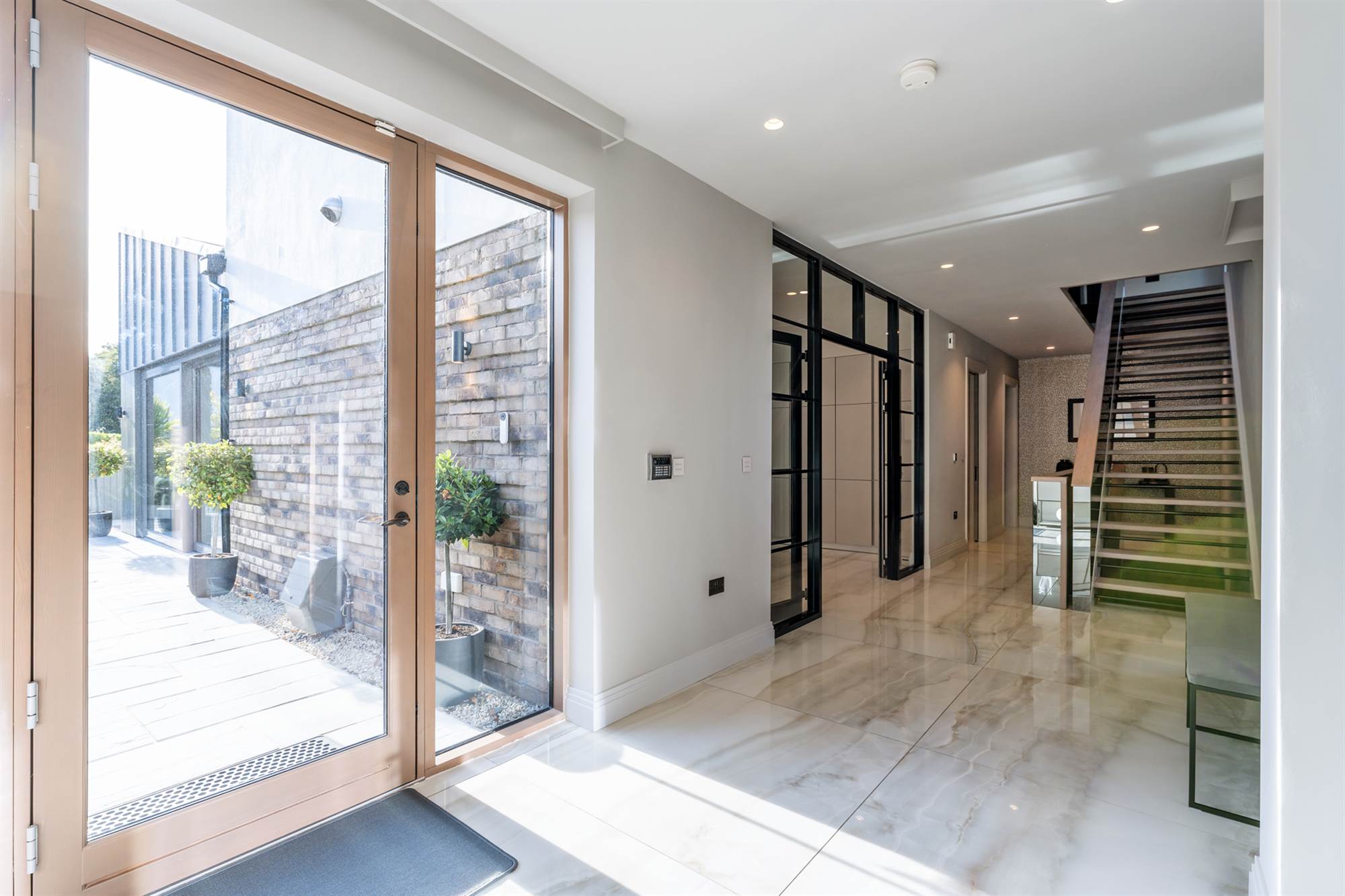The lower ground floor has a pilates studio & gymnasium with crittall walls for natural light and wired for a speaker system. This lower floor also has 2 fantastic large bedroom suites with recessed ceilings, one with dressing area and vanity unit, both incorporating built in wardrobes and designer bathrooms. Finally there is a cinema room, wired for surround sound so all can enjoy movies, Netflix or sports at their leisure.