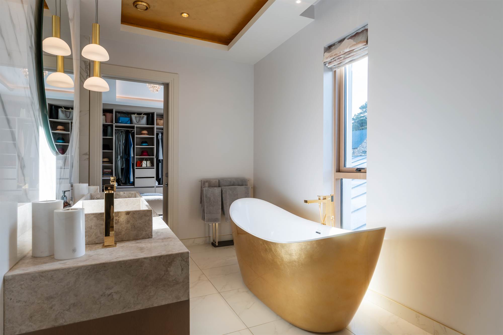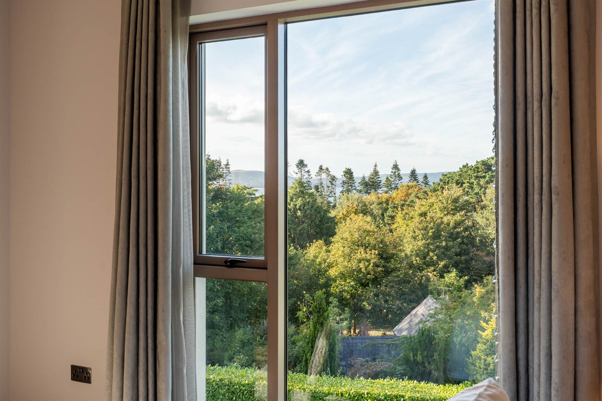 On the first floor there is a marvellous principal suite with the bedroom area with stunning picture window overlooking mature trees to Belfast Lough, a dressing and chill out area leading to a designer bathroom with wet room shower area, deep fill free standing bath, stone double sinks and marble detailing. The bathroom leads to a formal dressing room which could also be used as a nursery or the 5th bedroom.