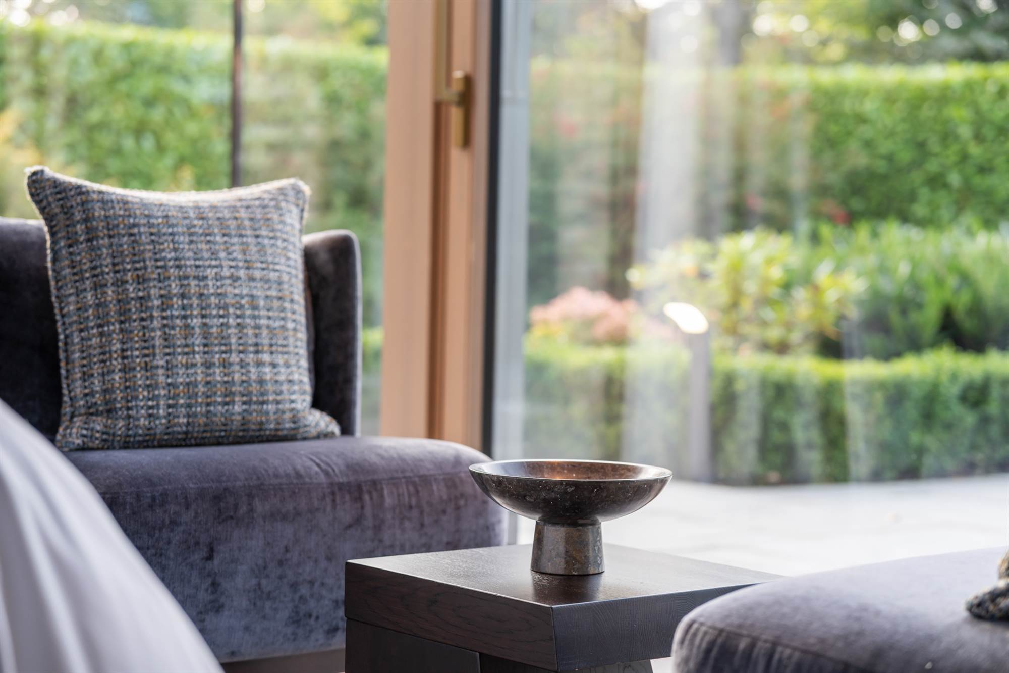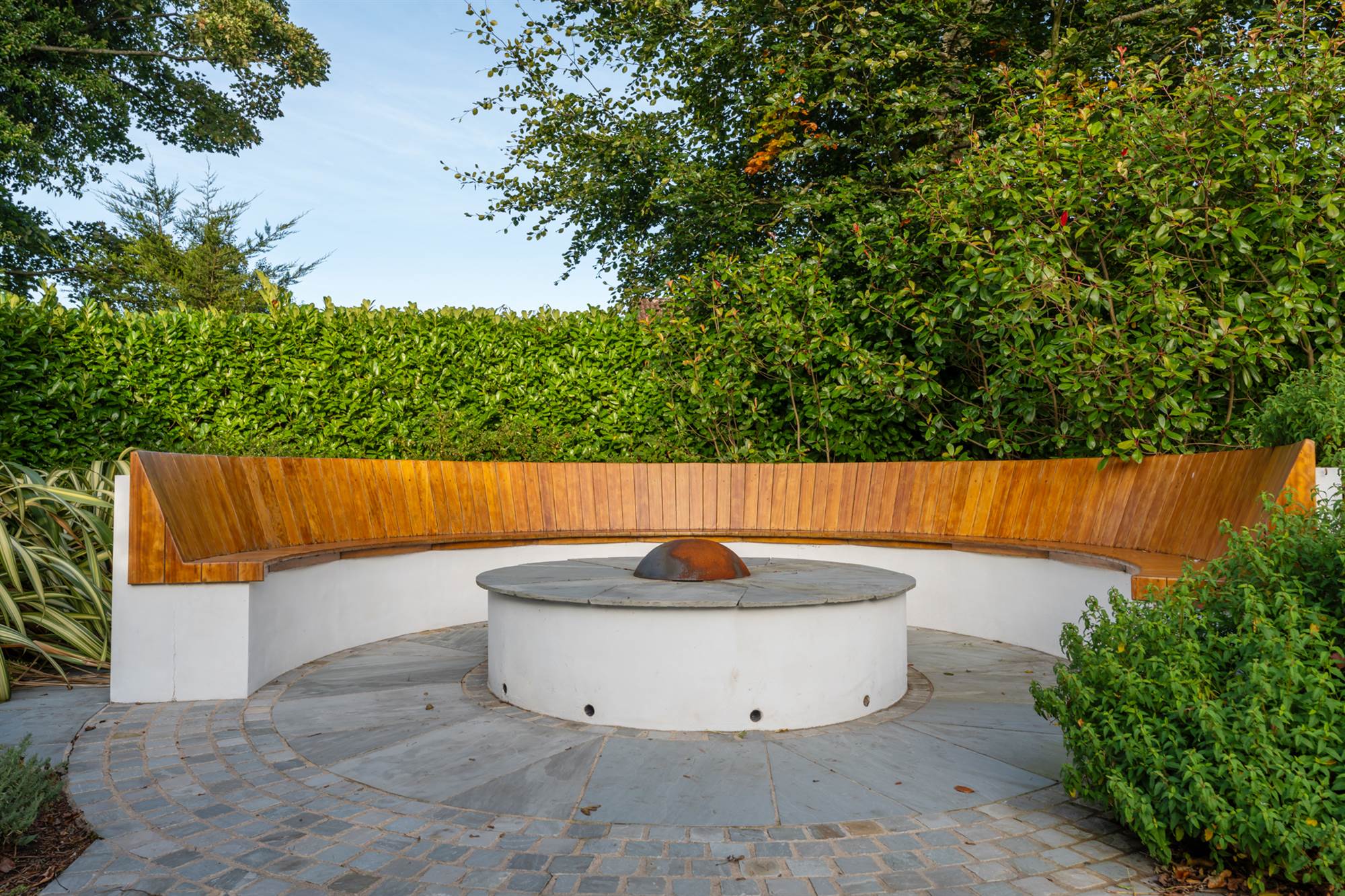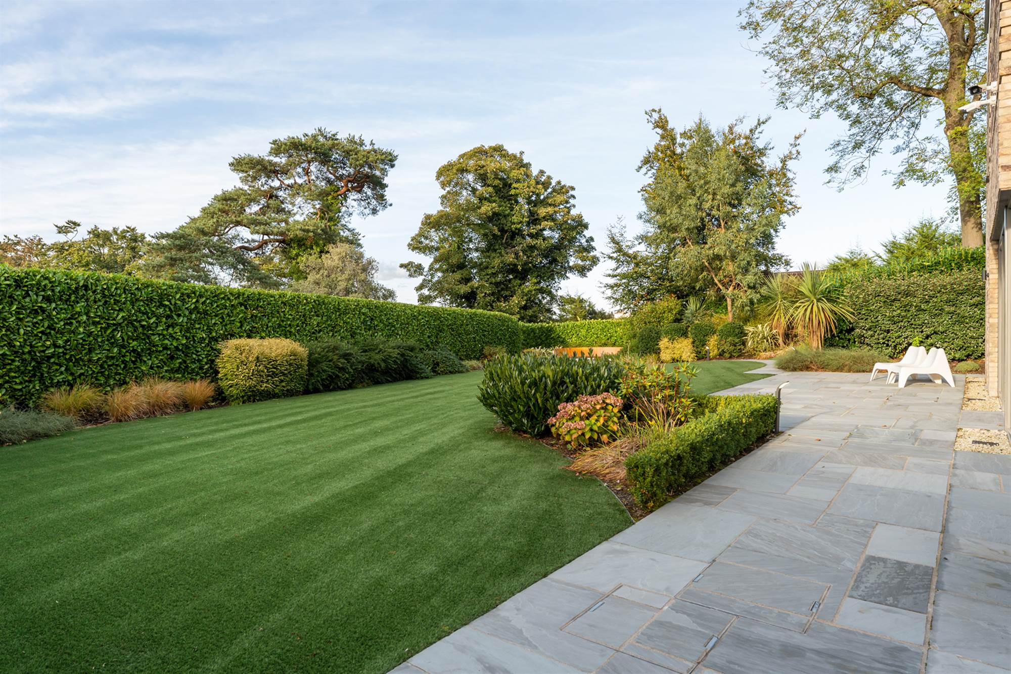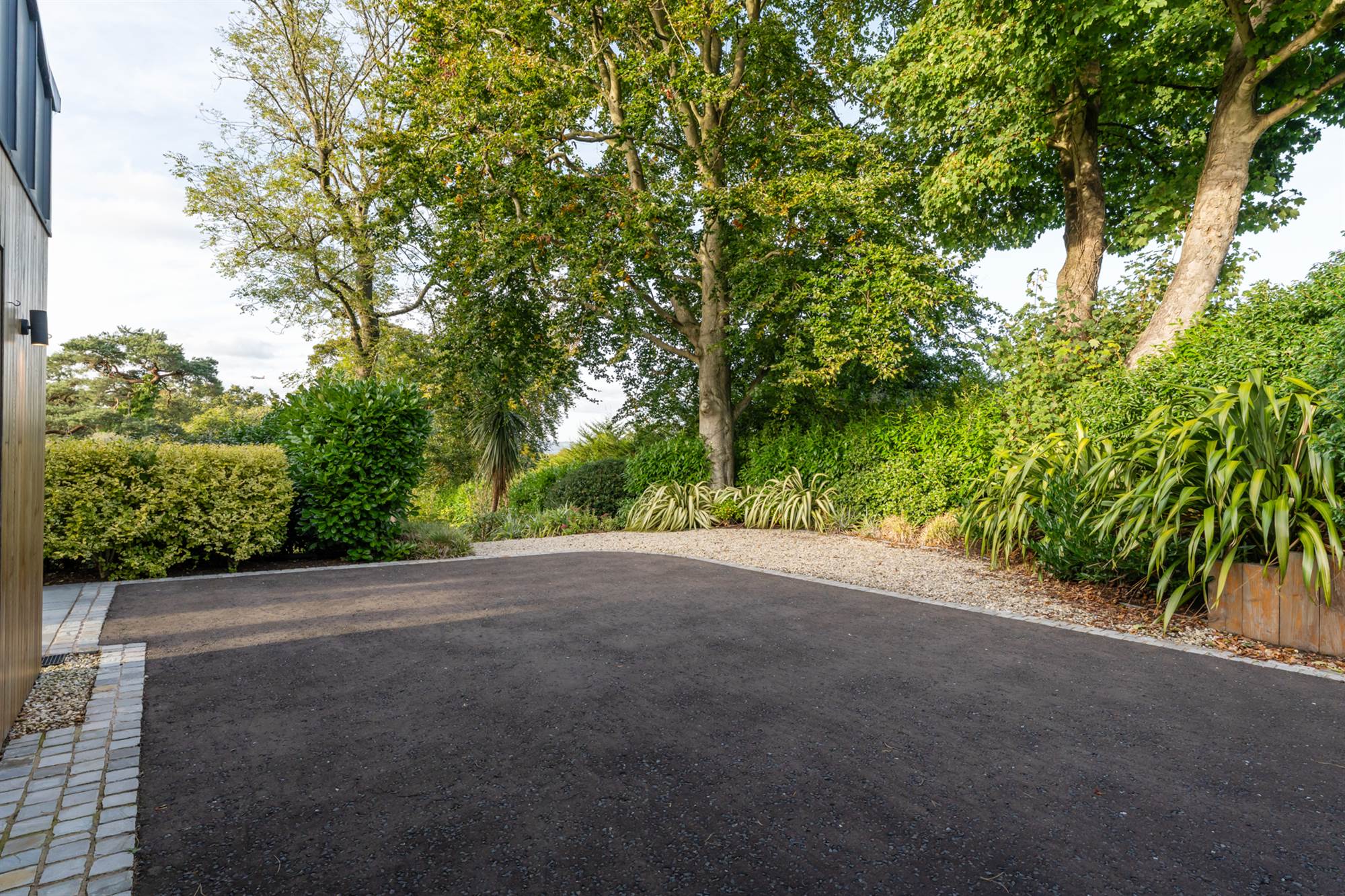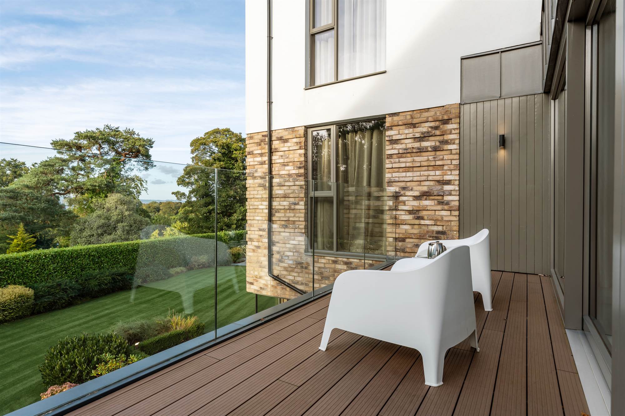 The gardens are beautifully designed and landscaped with minimal upkeep planned, there are mature trees, flowerbeds and artificial lawns in front of large slate terraces and patios so that all can enjoy this south westerly facing site. There is a balcony overlooking the gardens which is accessed via the living rooms which is perfect for entertaining, on the lower gardens there is a bespoke circular firepit with built in seating and a central gas fire where the prudent purchaser can entertain or relax in privacy.